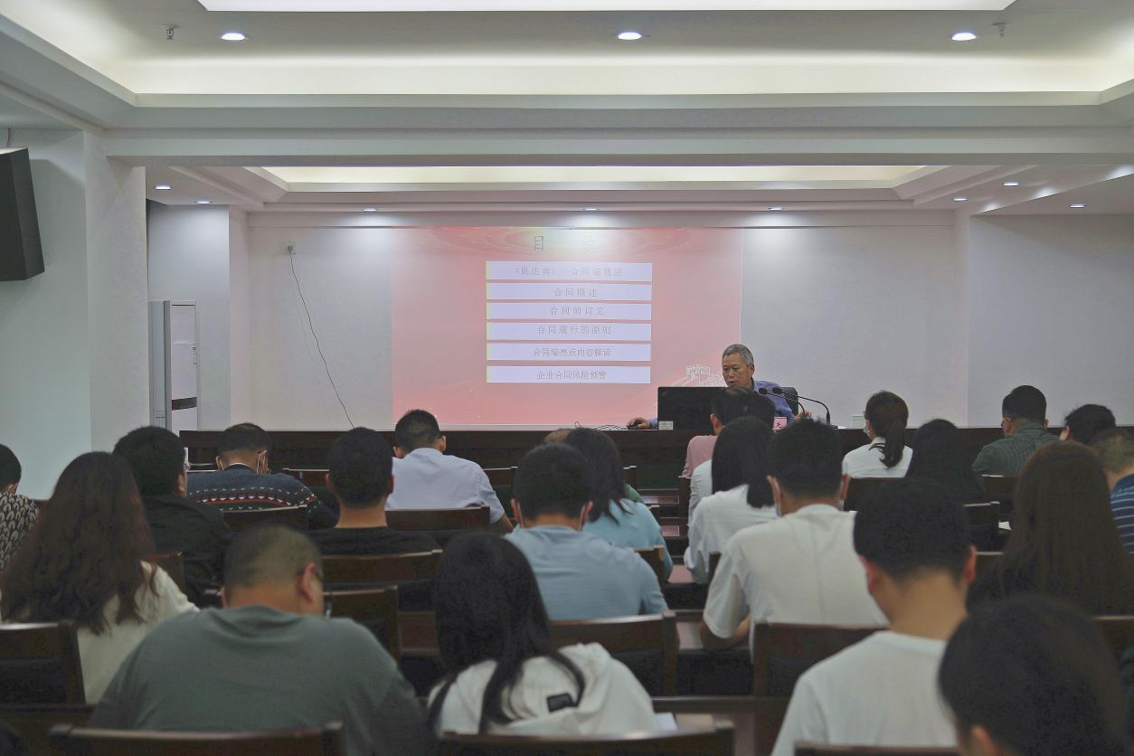 為做好企業(yè)普法宣傳工作,廣泛開展法律進企業(yè)法制宣傳教育活動,培養(yǎng)員工學法、懂法、用法法治思維,2022年5月25日下午,巴中發(fā)展控股集團舉辦了法律培訓,特邀請巴中市律師協(xié)會會長、四川砝鼎律師事務(wù)所主任朱曉光作專題培訓。集團總部員工,下屬企業(yè)風控負責人、法務(wù)、業(yè)務(wù)工作人員共計50余人參加本次培訓。培訓會議指出,現(xiàn)今契約文化的重要性不言而喻,合同是保障企業(yè)權(quán)利的命脈,要推動企業(yè)法律工作向管理型轉(zhuǎn)變,由事后救濟型向事前防范、事中控制型轉(zhuǎn)變,努力做好風險防控。