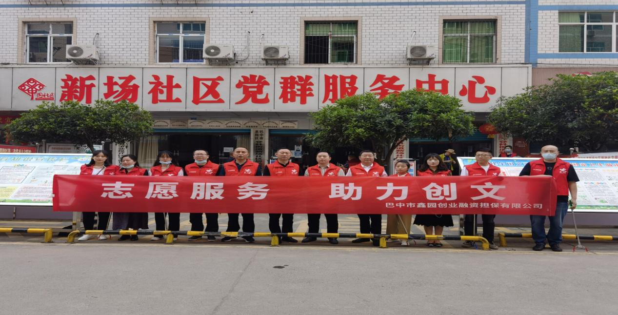 7月30日上午,巴中市鑫園創(chuàng)業(yè)融資擔(dān)保有限公司黨支部組織公司黨員志愿者和青年志愿者到恩陽(yáng)區(qū)新場(chǎng)社區(qū)開(kāi)展“志愿服務(wù)、助力創(chuàng)文”活動(dòng)。